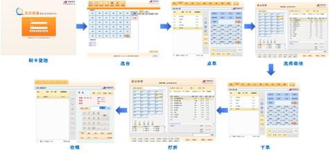 [界面重新设计]:采用从左至右、从上到下的界面分部设置,1、主界面功能修改为图标模式;2、增加软件界面可编辑区域;3、统一的科脉界面风格,更有利于客户熟悉、使用产品;4、会员发卡流程、点单、划菜、预订、厨打等软件操作细节上面的优化。使操作管理系统直观、便捷、高效;方便楼面快速点单操作。